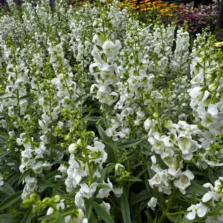 A colorful lawn border of whites and pinks