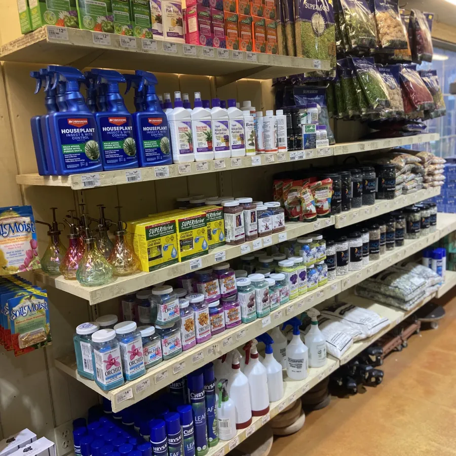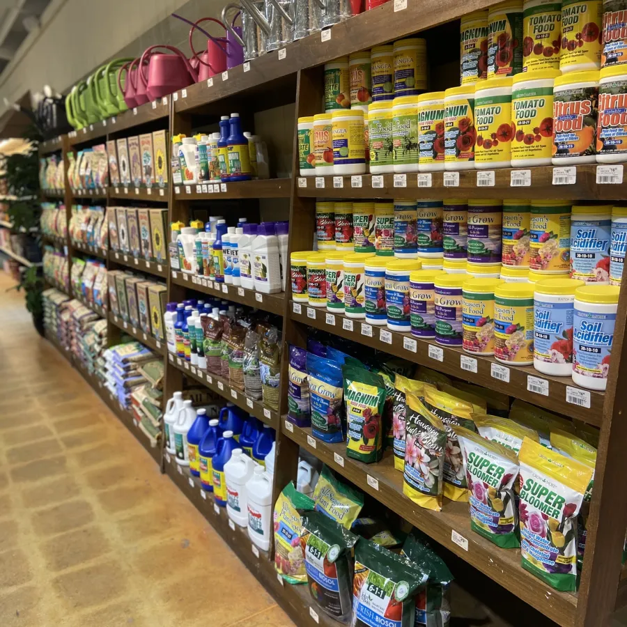 Our full-service nursery offers every essential for your garden, from soils and fertilizers to tools and pest control solutions, all organized for ease and selection. Our friendly, passionate team is always ready with horticultural insights and hands-on tips.